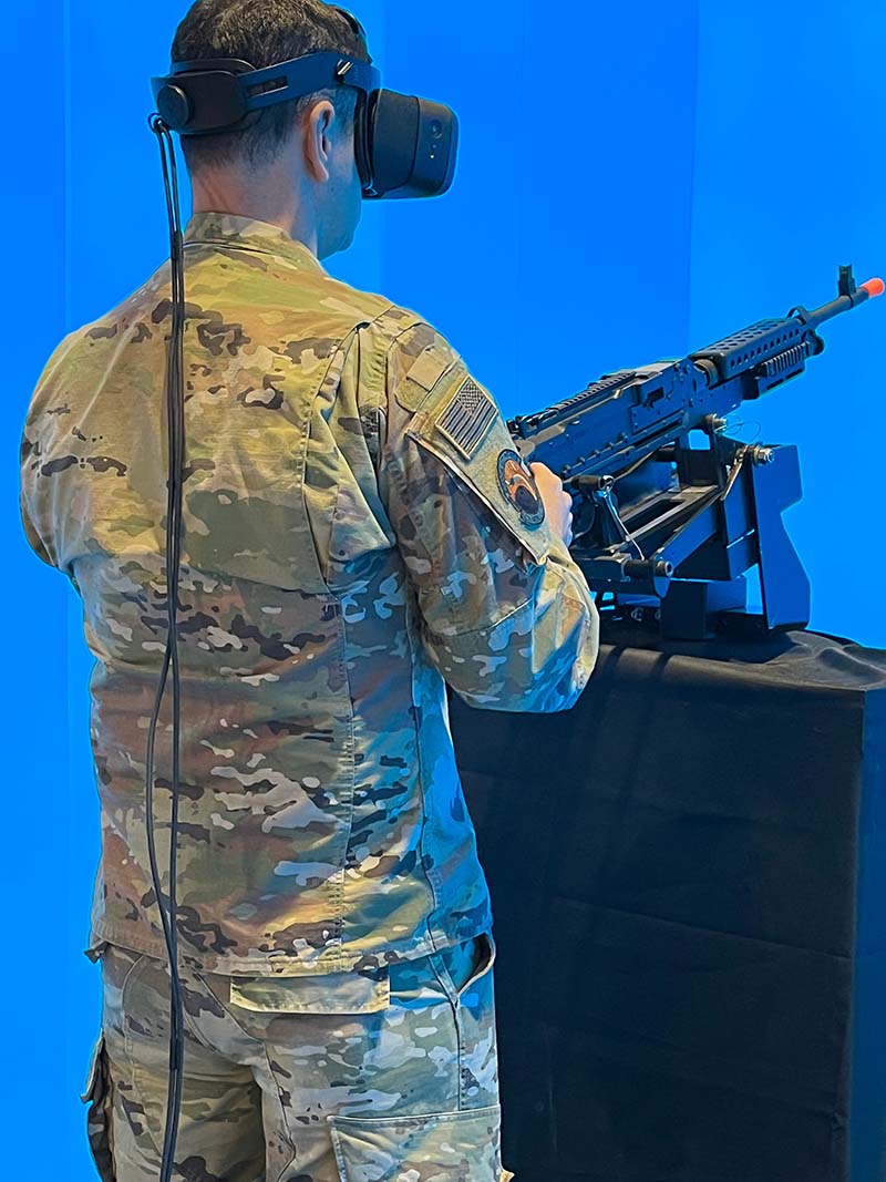 The demo shows an extended reality training solution for both individual and collective small arms training. The demo is linked to other booths using commercial 5G wireless networking.